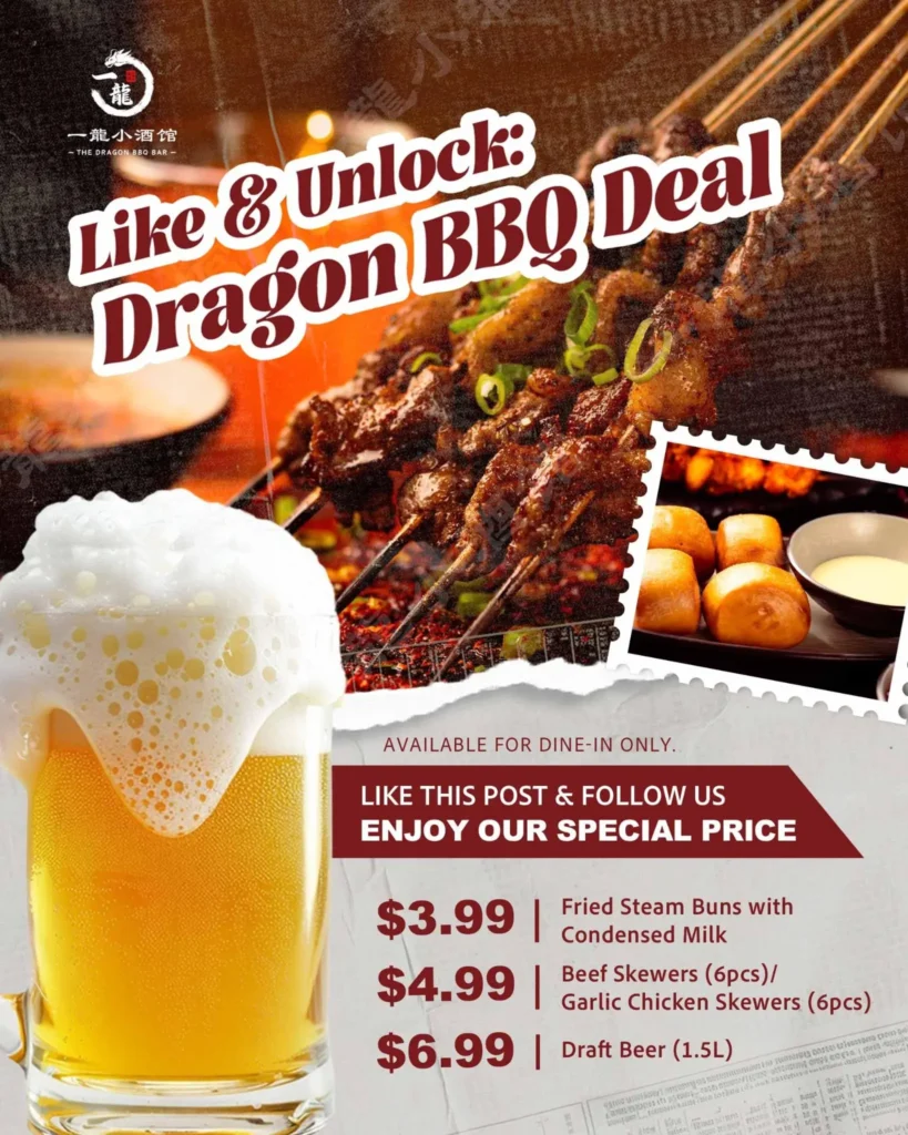 Just like this post and follow @the_dragon_bbq_bar on Instagram to unlock these exclusive deals: